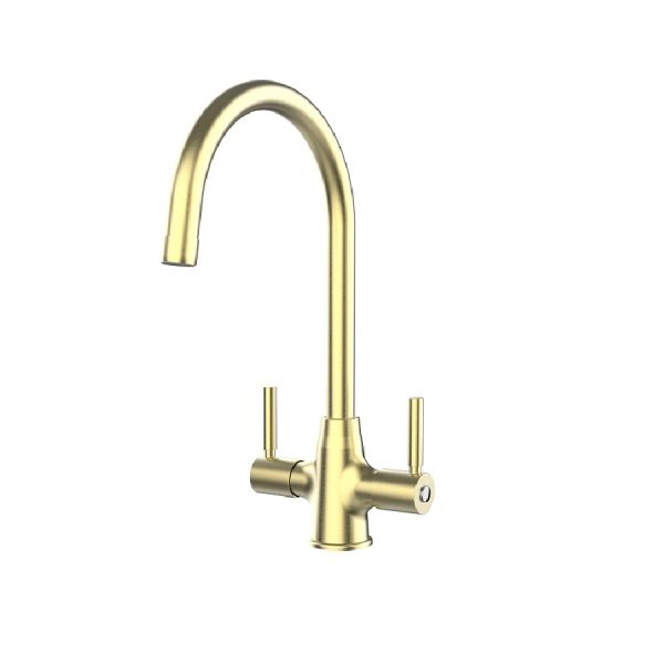 Sapphire twin lever quarter turn swan neck tap in brushed steel. We can fit this tap for you.
