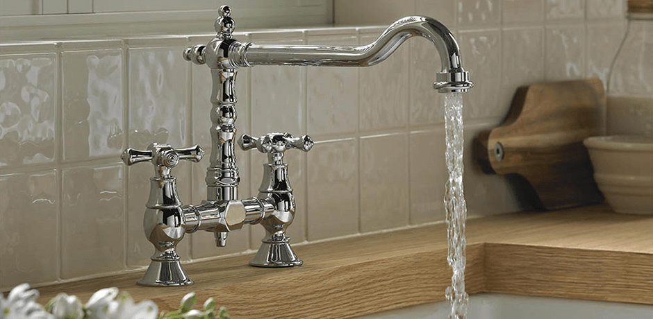 Swan neck dual flow tap with quarter turn handles in chrome. We can fit this tap for you.