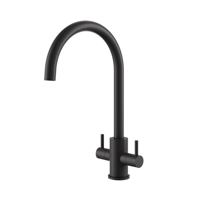 Swan neck dual flow tap with quarter turn handles in chrome. We can fit this tap for you.