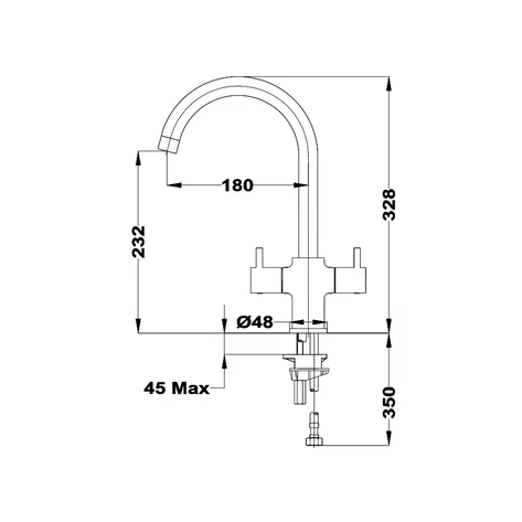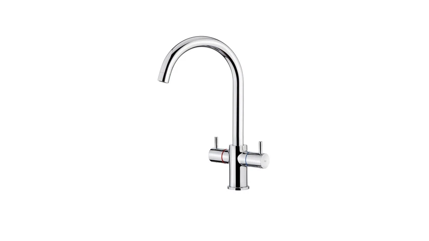 Swan neck dual flow tap with quarter turn handles in chrome. We can fit this tap for you.